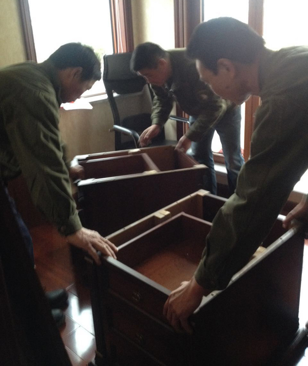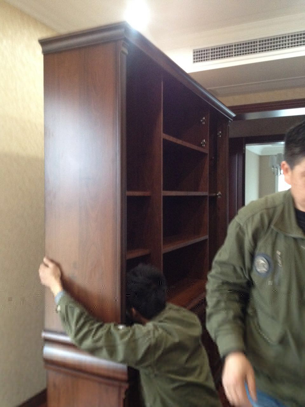 六、在搬運電視柜、組合柜等可分成幾個部分的板類紅木家具時,請將它們拆開,減少重量,方便搬運。